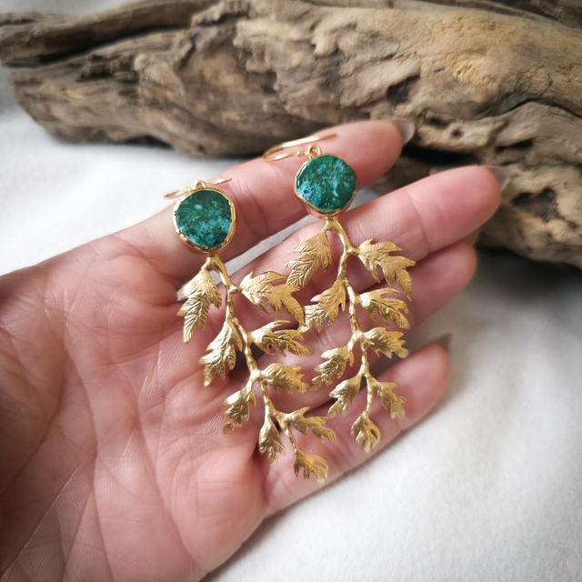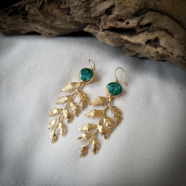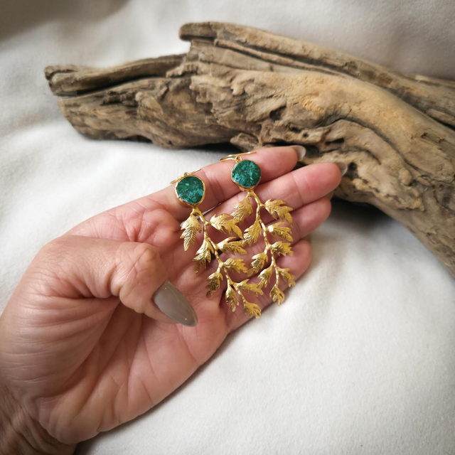 Brincos Flora com Malaquite e Crisocola
